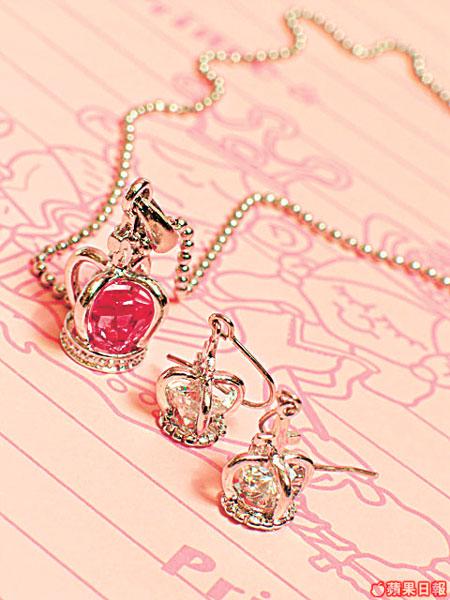 十分清雅的設計,銀色立體皇冠中放了一粒可活動的閃石,十分精緻,小巧耳環可配襯大些少的桃紅吊墜,Casual得來又斯文。