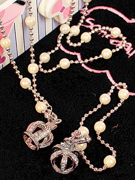 閃石教宗皇冠吊墜拼珍珠銀鏈,華麗非常,並可配襯頸鏈和手鏈成為一Set,出得大場面!