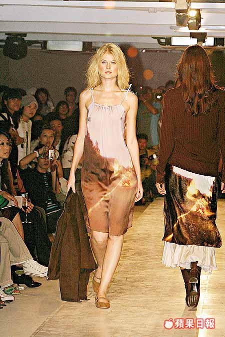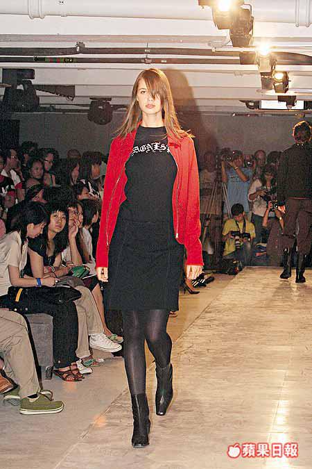 法國品牌agnesb.前晚假灣仔舉行的二○○五秋冬騷,展出多個不同主題的系列,其中重點是帶搖滾味的哥德式「agnesb.」字樣圖案,無處不在地印於服裝上。