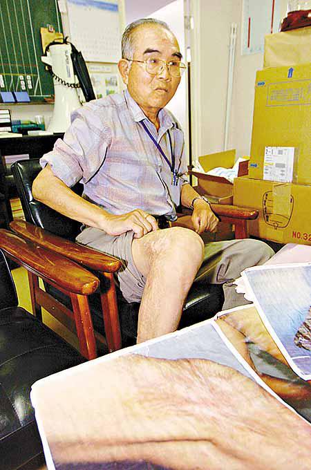 六十年前的昨天,美軍起名EnolaGay的B29轟炸機投下原子彈時,五歲的米田進透過距離原爆中心點一千四百米的醫院窗口,目擊了這歷史性的一扔。「我看見轟炸機底部打開,一個巨大物體擲下來。之後我看見一大團白光,全身像被火燒,氣流捲起的玻璃碎片,插滿我全身。」