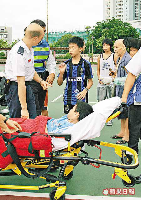 【本報訊】一名十一歲姓謝皇家馬德里碧咸小球迷,昨晨八時許,穿着球星碧咸的「23」號全套球衣,偕同穿着國際米蘭球衣的十三歲兄長,到石硤尾南山邨道一個球場踢足球。 其間「小碧咸」疑欲大顯身手,奮勇與敵隊另一名較他年長及高大的「波友」爭奪足球,結果不敵被推跌在地上,頭部先行着地受傷,更一度全身抽搐,瞬間陷入昏迷,嚇得其他隊友即時召喚救護車將他送院。幸好男童經初步急救已甦醒過來,僅右後腦腫起受輕傷,並無大礙。