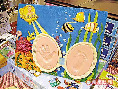 共十多款選擇的手印腳印瓷泥套裝,父母買回家後可自行為幼兒製作掌印紀念品,掌紋也可清晰印上,售價由198至288港元。