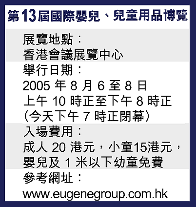 行政長官曾蔭權曾公開表示,每個家庭最好生3個,可見本港出生率之低,但嬰兒及兒童用品市場依然蓬勃,銷情甚佳。原因很簡單,新一代父母生子女多是「一個起兩個止」,故現今的嬰孩集萬般寵愛於一身,穿和吃也相當講究。不信?參觀過「第13屆國際嬰兒、兒童用品博覽」後,必定點頭認同。