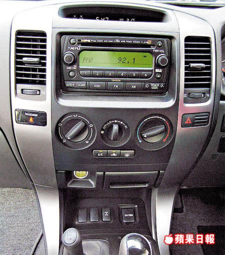 看上去,這部LandCruiserPradoSelect的車身前後都裝有原色黑膠泵把,外表唔係咁討好,不過卻給人有另一番粗豪的新感受,加上時下大興這類CitySUV車,筆者揸住部Prado穿梭於大街小巷,倒有高高在上的自豪感。對比起平日筆者駕着自家有七年車齡的「錢七」代步,跟一眾駕駛者平起平坐,鮮有被禮待讓路的機會,但今次身處Prado內,高高在上,視野大大擴闊,感覺的確大不同。