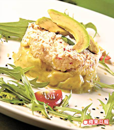 牛油果是愛健康的女士們激賞的生果,不油膩卻有飽肚感。配合條條蟹肉做他他,吃蟹也可吃得乾手淨腳。
