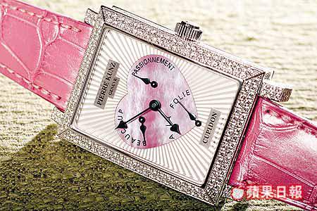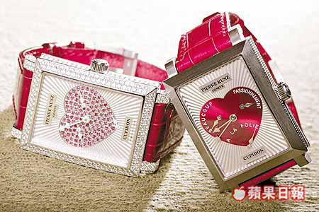 瑞士新進腕表品牌PierreKunz享有「飛返時計」大師的美譽,最新力作是以愛神丘比特為靈感的「Cupidon」系列,表面有以紅寶石排出火辣的紅心,具備的三重飛返秒針則是丘比特的箭,代表很愛、熱愛及瘋狂地愛的程度,寓意每秒中都甜蜜滿瀉。