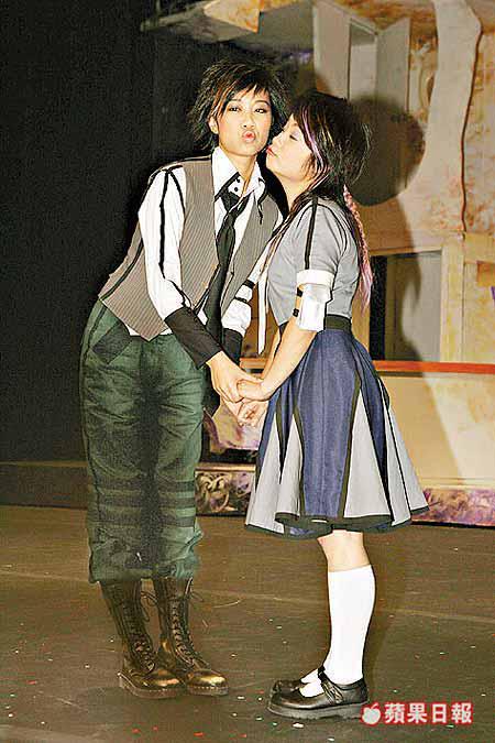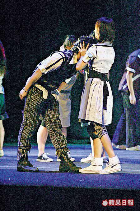 薛凱琪(Fiona)前晚演出《森美小儀歌劇團》,除要做拗腰拱橋等高難度動作外,還要犧牲色相,讓森美的頭枕在其胸口上。不過醒目的Fiona卻用手抓實森美頭部,以防對方貼得太近!