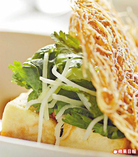 賣相及食味都非常西化的辣豆腐,吃時不妨將豆腐、胡荽及炸脆的芋絲一併入口,軟中帶脆,辣中帶香,口感過癮。