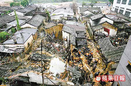 暴雨連場下,深圳一間房屋昨突然倒塌,大批救援人員冒雨搜索失蹤者,一名保安救人時遇難。據報,暴雨侵襲深圳期間,全市至少有五人死亡。大雨亦造成市內多幅護土牆鬆脫,深圳梧桐山部份路段路陷,全市至少發生二十多宗山泥傾瀉意外。市內三十多條街道水浸,南頭關口交通嚴重擠塞,貨櫃車大排長龍,寸步難移,有人索性下車,徒步行走。