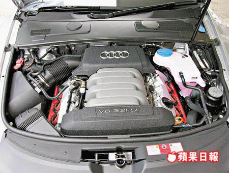 奧迪A6全新3.2公升V6FSI引擎,為大夾角汽缸新設計,並非取材自早前同廠TTCoupe的一台相若容積引擎型號,每段演繹更平均有力,經廠方細意調校過後,引擎中、高轉反應更會來得像似一部轎跑車,聲量變得更雄渾。