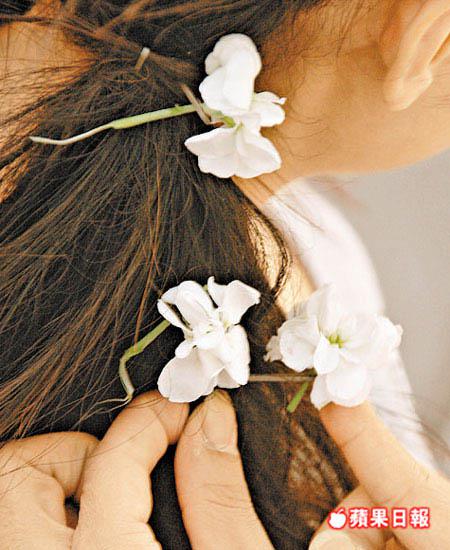 要將平平無奇的黑髮變得吸引並不困難,「花」可以話係最快最容易幫你轉變形象的小道具。鮮花或假花悉隨尊便,去旺角花墟就有大把你揀。若買鮮花,最好別選開得七七八八的,因為好快會謝,插上頭就會變得好醜樣。