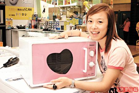 Q版粉紅色微波爐備有5種火力調控,微波火力為800W。爐內容量為22升,並設有30分鐘的計時。新式拉門加上浪漫的外形是結婚送禮的好選擇。