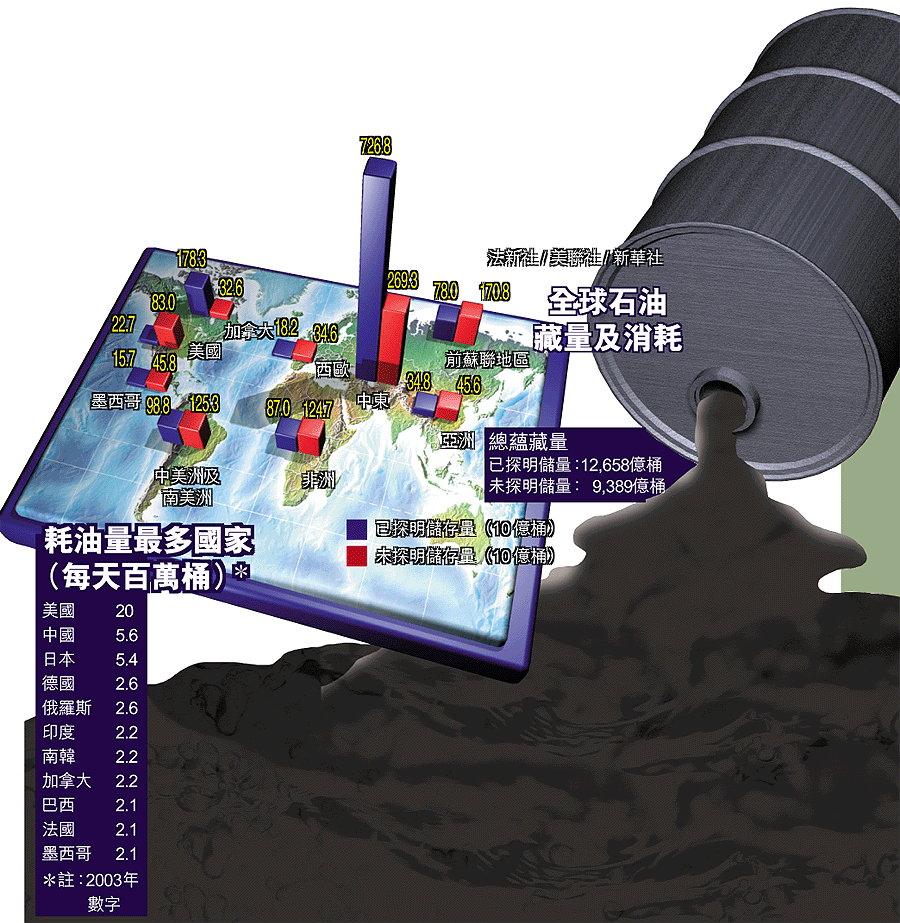 油價昨天突破每桶六十八美元的新高後,分析員指油價供不應求,只會大漲小回,油價向着每桶七十美元攀升。石油荒已掀起了一場石油爭奪戰,美國、中國、日本、印度等耗油最多國家,為了確保油源源源不絕,正在世界各地爭奪、併購油源,為油價推波助瀾,投入一場石油爭奪戰的大遊戲。