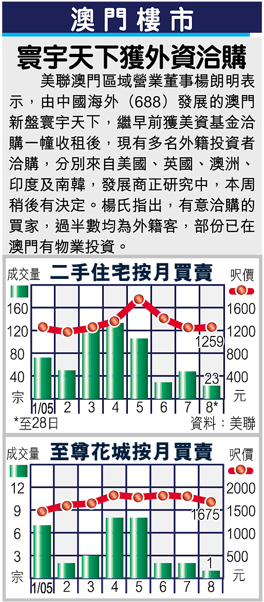 同時,投資者甚至不惜購入低回報舖位,南灣大馬路中華廣場,由一家旅行社承租的地舖,近日以1550萬元連約售予一香港客戶,回報率只有約2.9厘,較同區舖位偏低,可見投資者對後市信心十足。
