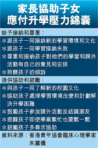 她說,以升中一學生為例,他們由小學的大哥哥、大姊姊,變成全校最細的中一妹、中一仔,或會因身份轉變而感到不是味兒,影響自我形象。此外,升中四及中六的學生,部份需到另一所中學就讀,需在短時間內適應新環境、新朋友而感到壓力。