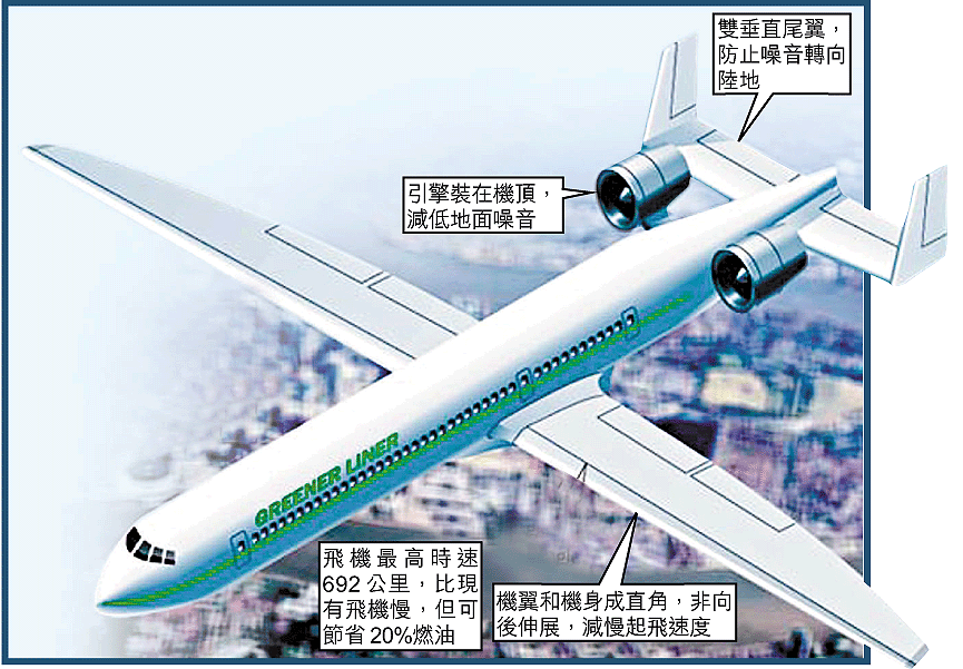 減了噪音和燃料,環保飛機飛行時速卻只有六百九十二公里,比現存飛機至少八百零四公里慢,由英國倫敦飛到德國法蘭克福就要多用五至十分鐘。