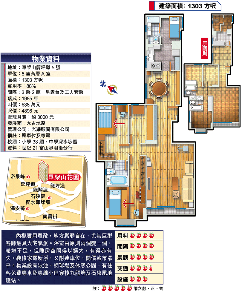 世紀21梁曉陽表示,1303方呎單位僅3及5座提供,放盤極罕有,現時不足5個,連車位普遍開價逾700萬元,介紹的5座單位開價最平,內櫳裝修企理,一併出售的家電保養簇新,更附連車位,屬近期筍盤之一。