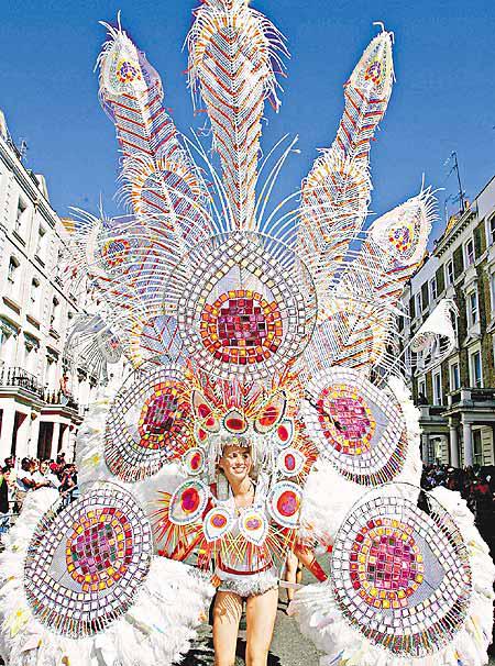 英國倫敦諾廷希爾周一舉行倫敦遇襲後首個嘉年華,吸引至少七十五萬人前來觀看(圖一),整條街迫得水洩不通。性感的舞蹈員穿戴着誇張鮮豔衣飾(圖二),成了傳媒的焦點。