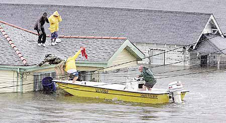 四點五米高的洪水,如毒蛇猛獸撲入新奧爾市的法國區(FrenchQuarter),居民爬上屋頂躲避。六千名國民警衞軍奉命出動,用直升機和小艇營救被洪水圍困的災民。