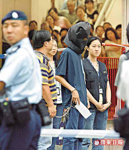 昨午四時許,涉案刀手被探員蒙頭及鐵鏈纏身先押往橫頭磡邨,疑犯在攝錄機前先講出自己姓名後,便開始描述案發經過。