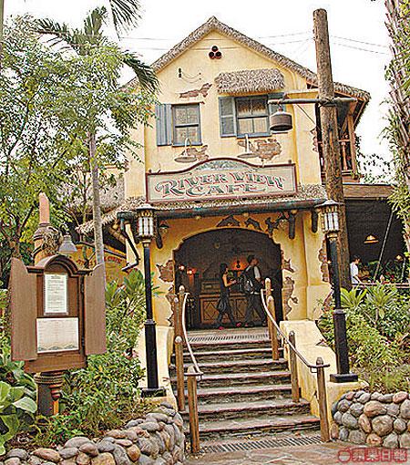 位於探險河畔的「河景餐廳」,仿效18世紀當時探險隊在非洲建設的休息站,在乘船探險前或後醫肚。餐廳以供應中式套餐為主,菜式是一般的家庭式小菜如咕嚕肉、粟米斑片、燜雞等約6款,每位計有飯有湯有生果盤。食物唔算特別,但環境一流,一邊望林景,另一邊可遠眺探險河,黃昏時段涼涼哋感覺舒服得多。套餐分3餸1湯3-4位用、5餸1湯5-7位用及6餸1湯8-10位用,$65/位。