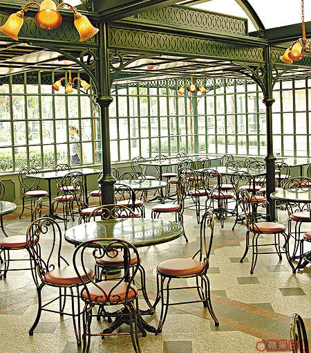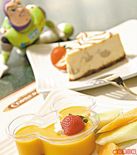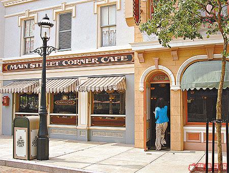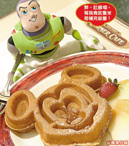 來到樂園入口,首先會去到「美國小鎮大街」,這兒有兩間餐廳,一間是供應廣東家常小菜的「廣場餐廳」,另一間是布置充滿19世紀維多利亞時代風格的「大街餐廳」。搜勻整間餐廳,唔多覺有米奇圖案的布置,反而在食物上會找到米奇的蹤影,布甸啦、沙律內的脆麵包粒啦,還有,那件如手掌般大的窩夫,確實唔忍心切爛佢吞落肚,算是今次去過的4間餐廳中,有最多米奇頭食物。這兒的食物選擇算是多元化,早餐有粥或窩夫餅,午餐或晚餐有鮮茄豬扒飯、肉醬意粉,連中式麵如牛腩麵、四川擔擔麵都有;畀個小貼士你,在這兒叫套餐最化算,主菜配湯或沙律或甜才不過$60,同出面一般西餐廳價錢差不多,難怪樂園的餐飲部總監Klaus都話在眾多迪士尼樂園中,食物價錢以香港的最平。