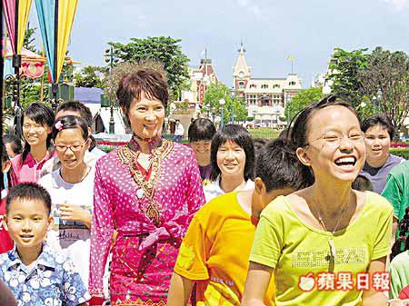 另一方面,護苗基金主席蕭芳芳日前為迪士尼樂園的「幻想世界」主持揭幕儀式,當日天氣酷熱,蕭芳芳與一百位可愛的小朋友,在睡公主城堡前拍攝。