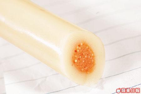 童年回憶,一定是學校買腸仔吃。日本即食腸仔,跟歐美的口味截然不同,用魚蛋、魚皮、蛋白等做餡,裏頭釀了不同夾心口味,加上那唧出來的食法,和式與童真的拼合。