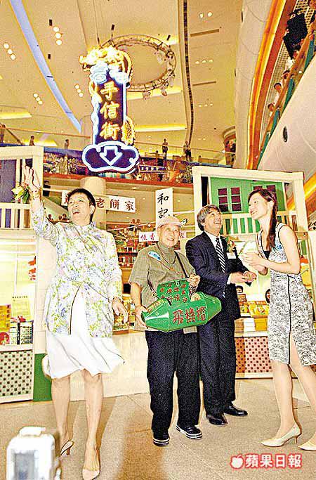 位於青衣城的手信街昨日開幕,人稱基伯的飛機欖始創人郭鑑基在街角擺賣自家醃製的飛機欖。他手彈秦琴,口唱賣欖歌:「咁靚嘅欖,的確係無彈;生津止咳,下火又除痰……」現時八十二歲的基伯還背着飛機型的鐵製欖箱到處擺檔,假日可賺逾一千元,「十蚊七粒欖,𠵱家都係三十幾歲以上嘅先會幫襯。」
