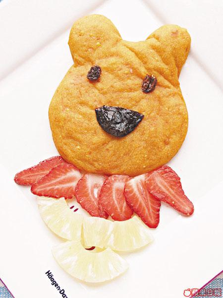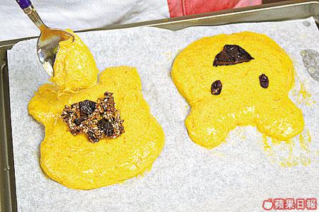 高飛:「小熊維尼最鍾意食蜜糖,所以呢個小熊南瓜餅入面放咗焦糖合桃、提子乾做餡,佢見到一定會好鍾意。」