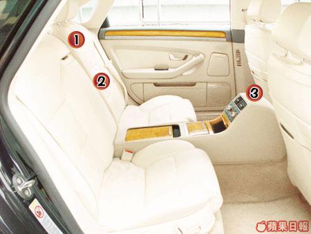 全車另一個賣點所在,自然是給伸延多130mm的座艙陳設,兩排高級皮椅軟滑貼服,前後座席重具備電控調校,加上四周上乘的桃木修飾,即使置身賽車場中,座艙內仍很寧靜舒服。其次,原車廂內備有FourZone獨立恒溫冷氣連送風裝置,加上全套Bose高級音響及CD座,以及時下流行新追加有Bluetooth免提電話系統,無論前後座乘客都感到方便。