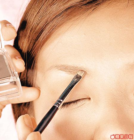 ■未畫眉前,先拔除多餘雜毛,眉峯至眉尾要修短修薄,以啡灰眉粉輕輕加深眉頭。