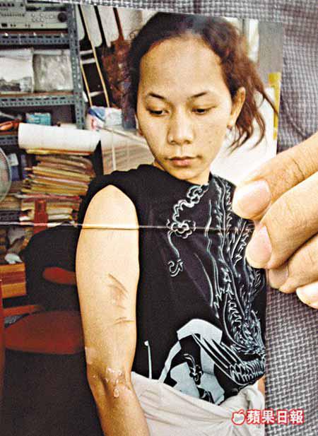 二十三歲事主昨供稱,事發晚她在廚房熨衫,被告向她查問一個舊錢罌的下落,她承認打爛該錢罌,並將內裏的金錢連同碎片,當作垃圾一起扔棄。被告突用右手捉着她的右手腕,然後左手拿起熨斗,用熨斗的邊沿連燙她右手臂三下,並問她痛不痛,當時她已痛得哭泣,但被告再用熨斗,壓向她的右手踭,她登時痛極倒坐地上,被告返回客廳,向她說不要將事件告知男僱主。