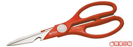 雖說是多用途廚剪,但因為刀片有凹位,故連雞骨都可以剪。手柄位凹凸膠防跣,扣位一扭90度可拆出來清洗。另可以撬罐、扭蓋、破硬果等。