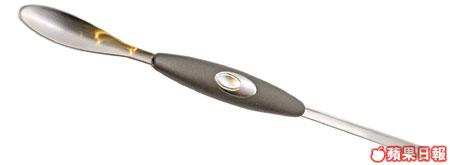 兩個手柄位夾爆蟹硬殼,鉸剪剪開蟹腳,叉插入幼身蟹腳深處,倒鈎撩出絕處蟹肉。日本設計兼製造,柄上立體紅蟹夠Cutie。