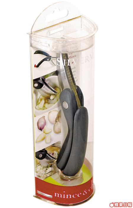 三塊刀片,中間特厚,能細緻又均勻「剪」出如蒜頭、葱頭、香草等細碎,放在碗內逐樣剪,連汁也撈埋,用來做醬汁最好。