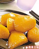 糖番薯是台灣街邊小食,也是家常點心。番薯呈透明且亮的玻璃色,有麥芽糖的香味,但含大量糖份,糖尿病患者不宜。台灣人還會以這種做法把香蕉、菠蘿、蘋果等做成蜜果小點,若果酸多的可增加粗砂糖份量。煮這類蜜果不可用力翻攪,以免破爛。