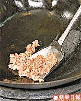 免治豬肉8両、鹹蛋黃1個、蔭瓜少許