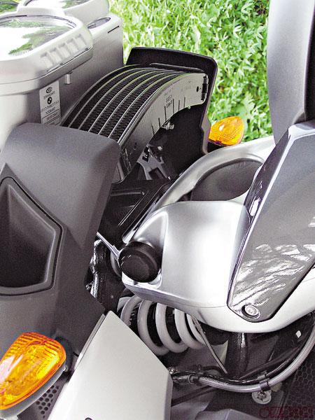 咪睇呢部寶馬K1200R身形咁魁梧,由於屬高性能跑車設計,除全新車架結構剛勁夠紮實外,一台全新編排的直4引擎以低重心布局,加上只有820mm的座鞍離地距,高速轉彎起來亦好穩定。
