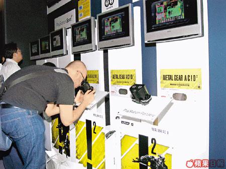 今年TGS,《MG》系列可算係風頭一時無兩,唔單止喺PS3、PS2,連PSP都有新Game推出。PSP版《MetalGearAcid2》係一部同前作差不多嘅CardGame,除咗加入咗無線通信外,重增設咗PSP遊戲上獨有嘅SOLIDEYETOBIDACID,將佢放喺PSP上面,配合遊戲畫面嘅設計,就可以睇到立體畫面,現場測試效果幾正,不過唔係所有遊戲畫面都對應呢幅立體鏡。