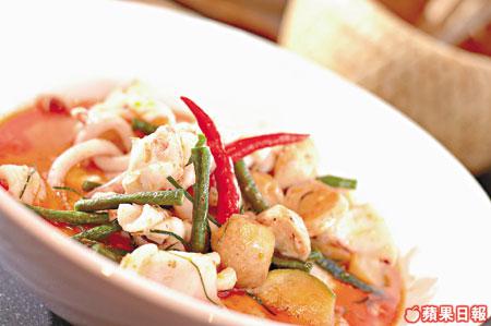 不少泰菜都會用上咖喱,今天用的馬沙曼咖喱醬,醬內加了花生。若嫌鮮魷太高膽固醇的話,可改用蝦來代替。