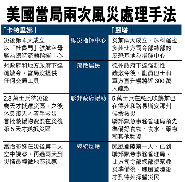 「麗塔」沒造成重大破壞,但德州州長佩里呼籲近三百萬災民暫時不要急於返回德州的寓所,因為當地缺乏燃油、食水等物資,待軍方將物資運來才好回家。