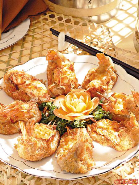 荔甫指很粉身的芋頭,芋頭要先去皮切片,再混上魚茸,蒸熟過後,新鮮海蝦放在荔甫之上一起油炸,便成了香脆可口的炸物。每一件份量不小,蝦身夠大,不過芋頭多吃會膩,還是少吃多滋味。