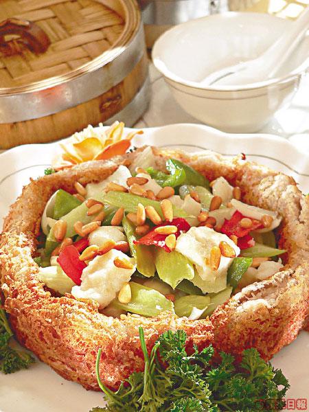 靈感來自曾經在泰國留居的行政總廚,因為目睹泰國街頭的和尚尋找善信們布施的情景,因此炮製出以芋頭製的佛缽,再放滿八款食材以作模仿。八仙分別是西芹、青椒、紅椒、魚片、蝦仁、百合、松子、雪耳,口感極豐之餘,又能保持食物清鮮爽脆的味道。