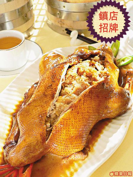 Helen說:「第一日先預備好糯米飯,第二日把飯釀入鴨裏,再燜上三個小時,所以工夫是少不了喇!」可見能夠成為鎮店之寶絕非易事。內有乾坤的八寶鴨,一端上來已經香噴噴,輕輕一拖就剖開的鴨肉,肉質嫩滑。八寶分別是瑤柱、蝦米、鴨肫、臘腸、冬菇、蓮子、冬笋煮成的糯米飯,飯本身已經很香口又煙韌,加上鴨味滲透裏面,飯和鴨一起吃更是配合得天衣無縫。