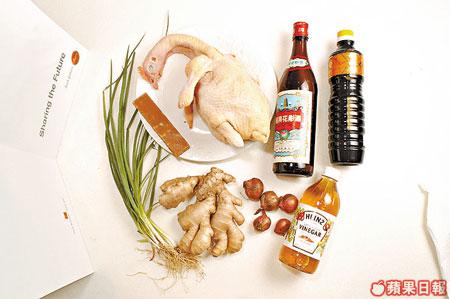 雞1隻、葱2條、薑粒1湯匙、乾葱4粒