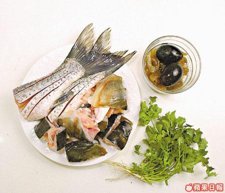 大魚頭1個、鯇魚尾1條、皮蛋1隻、芫荽4棵、茶瓜10條、水1.5公升