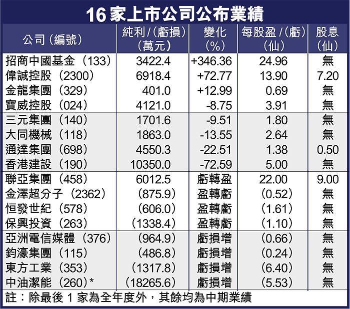 【本報訊】僑威(1201)透過優化產品組合、提高生產效率及嚴格控制成本,令截至6月底中期純利升30.2%,至2954萬元;每股盈利11.03仙;中期息1.8仙,升20%。