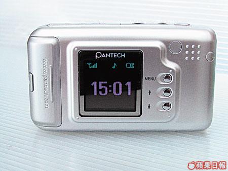 PANTECHPG-6100嘅鏡頭設計得好似DC,加上大大個補光燈設喺機面右上方,望落真係好難令人相信佢係一部手機;最難得係連機背顯示屏、按鈕同入電位,都抄足同DC一樣,實在好難怪會令人誤會嘅!