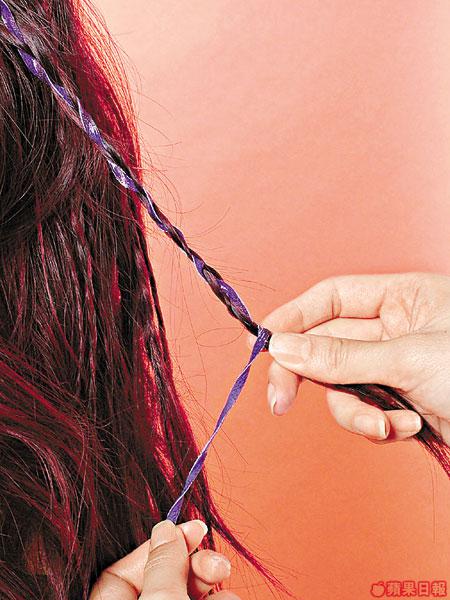 2.束擯辮時若使用橡膠圈會十分煩人,可在髮尾用定型噴霧,再向上梳削緊髮尾。